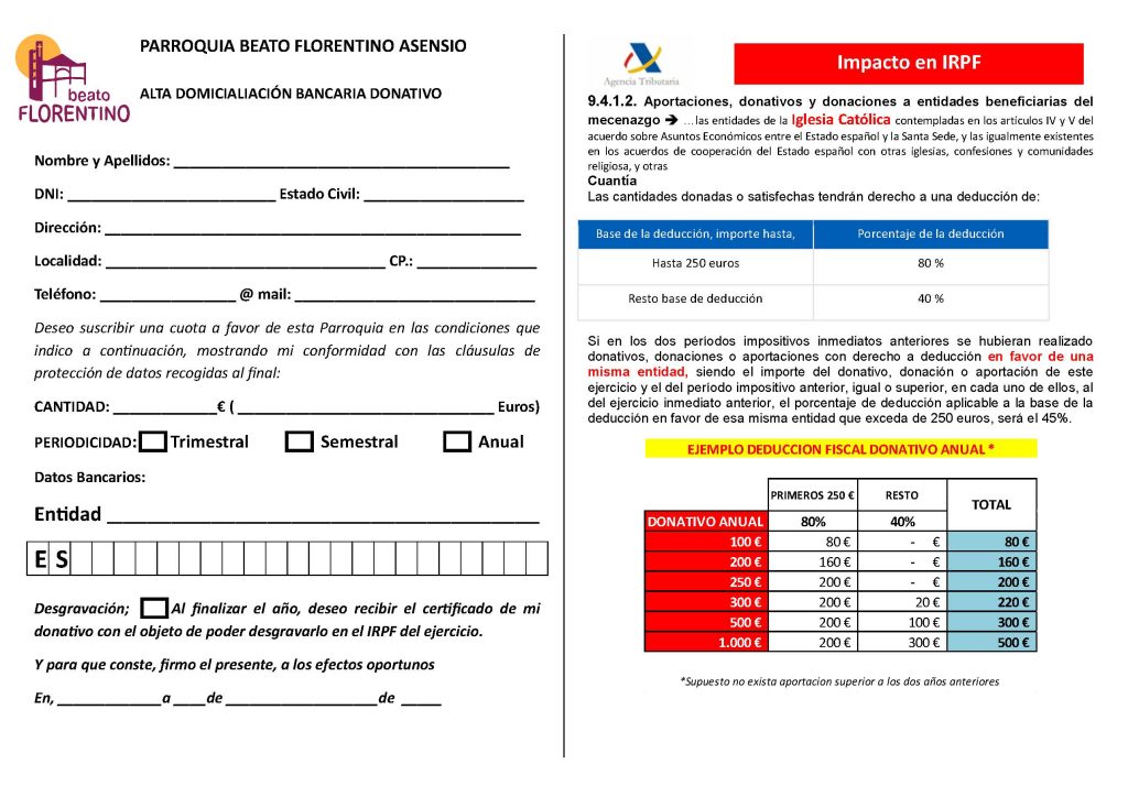 Puedes imprimir y rellenar el folleto y traerlo a la parroquia (hay un buzón en la entrada) o recoger el folleto en la misma parroquia.