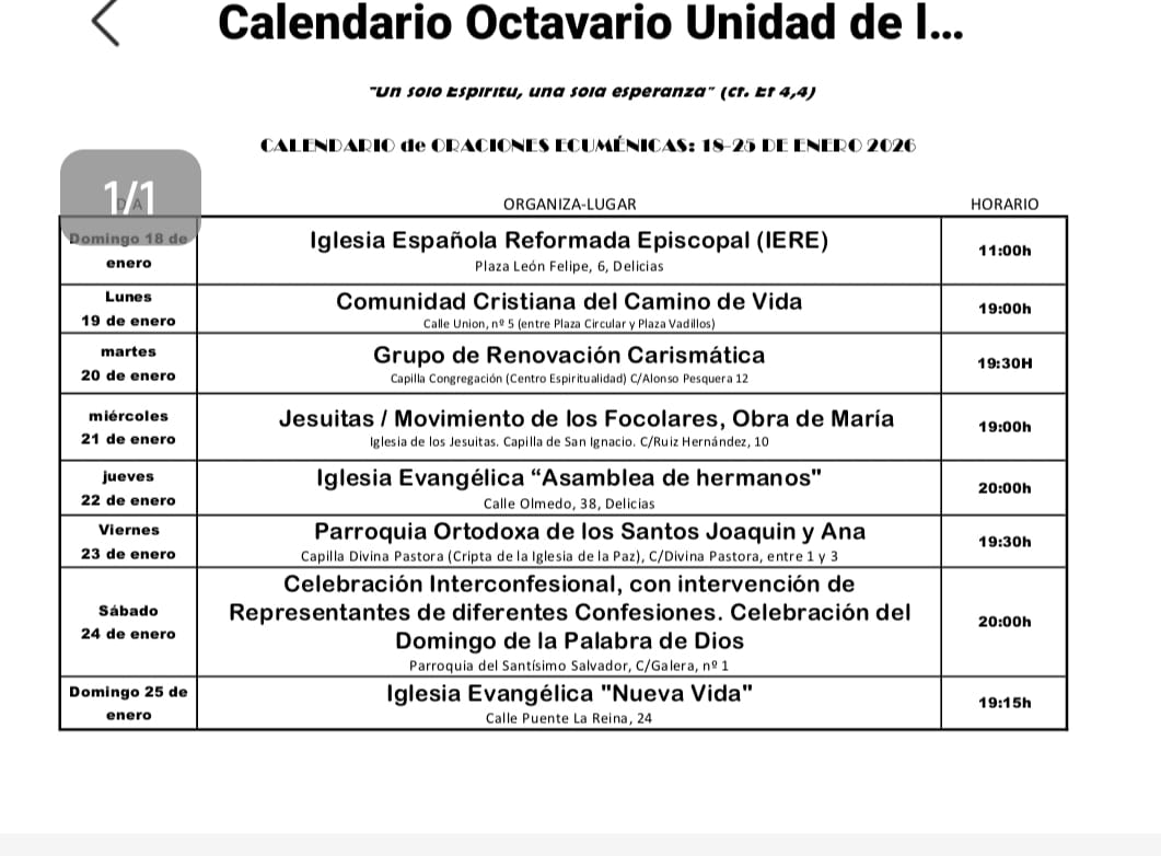 Celebramos la semana de oración por la unidad de los cristianos. Será del 18 al 25 de enero.